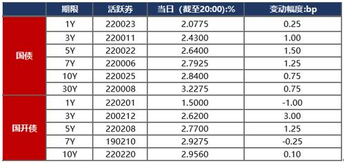 1月9日,债市消息面平淡,股债跷跷板效应下,现券整体震荡偏弱,银行间主要利率债收益率多数上行。截至北京时间20:00,10年期国债活跃券220025收益率上行0.75bp至2.8400%;10年期国开债活跃券220220收益率上行0.10bp报2.9560%。
