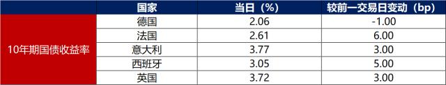 12月18日,除德国10年期国债收益率下行1bp至2.06%外,其余主要欧洲经济体10年期国债收益率普遍上行。其中,法国、意大利、西班牙、英国10年期国债收益率分别上行6bp、3bp、5bp和3bp。