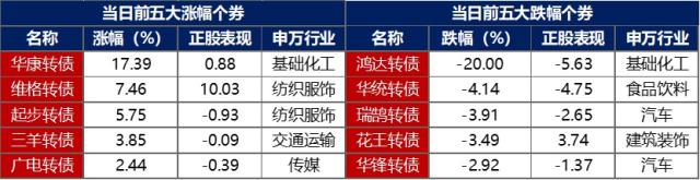 【转债市场主要指数集体收跌】 1月15日,转债市场出现补跌,当日中证转债、上证转债、深证转债分别收跌0.16%、0.07%、0.30%。当日,转债市场成交额319.91亿元,较前一交易日缩量22.79亿元。转债市场个券多数下跌,555只个券中,147只上涨,393只下跌,15只持平。当日,新上市华康转债涨超17%,领涨市场,存量个券中维格转债涨超7%,起步转债涨超5%,三羊转债涨超3%;下跌个券中,鸿达转债跌停20%,华统转债跌逾4%,瑞鹄转债、花王转债跌逾3%。