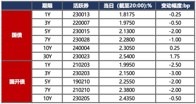5月6日,五一假期出行消费以及财新服务业PMI等数据对市场干扰较小,债市转而震荡。当日银行间主要利率债收益率有所分化,中短端持续下行,超长端有所上行。截至北京时间20:00,10年期国债活跃券240004收益率上行0.25bps至2.3050%;10年期国开债活跃券230205收益率下行0.50bps至2.4350%。