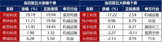 【转债市场主要指数小幅收涨】 5月9日,转债市场跟随权益市场有所反弹,当日中证转债、上证转债、深证转债分别收涨0.80%、0.73%、0.92%。当日,转债市场成交额662.10亿元,较前一交易日大幅放量111.52亿元。转债市场个券多数上涨,547支转债中,493支上涨,40支下跌,14支持平。当日,上涨个券中,开能转债涨超19%,泰林转债、耐普转债涨超11%,泰坦转债涨超7%;下跌个券中,锋工转债跌逾17%,回调较大,伟24转债跌逾9%,瑞丰转债跌逾5%。