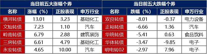 【转债市场主要指数小幅收涨】 6月7日,转债市场有所反弹,当日中证转债、上证转债、深证转债分别收涨0.15%、0.08%、0.25%。当日,转债市场成交额822.4亿元,较前一交易日缩量187.2亿元。转债市场个券多数上涨,536支转债中,342支上涨,187支下跌,7支持平。当日,上涨个券中,横河转债涨超13%,文灿转债涨超7%,岭南转债、三房转债涨超6%;下跌个券中,双良转债跌逾8%,正裕转债跌逾6%,华统转债跌逾5%。