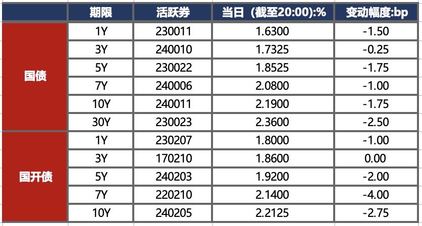 债市早报:资金面继续改善,银行间主要利率债收益率延续下行