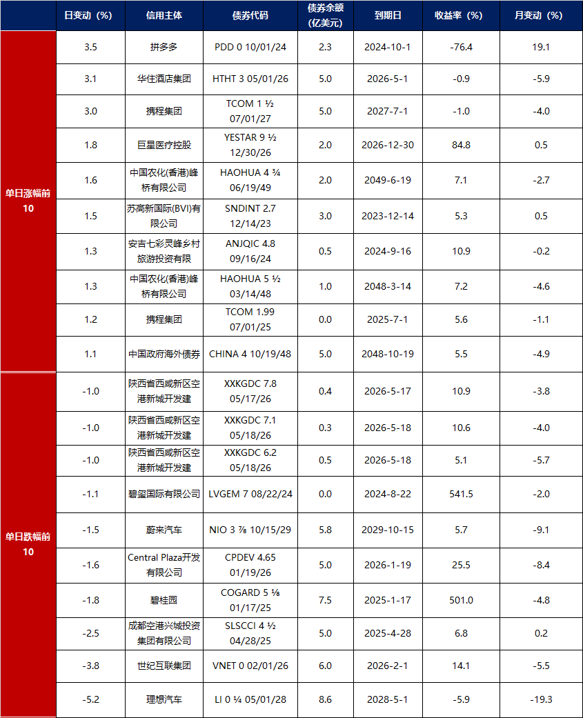 中资美元债每日价格变动(截至8月28日收盘)